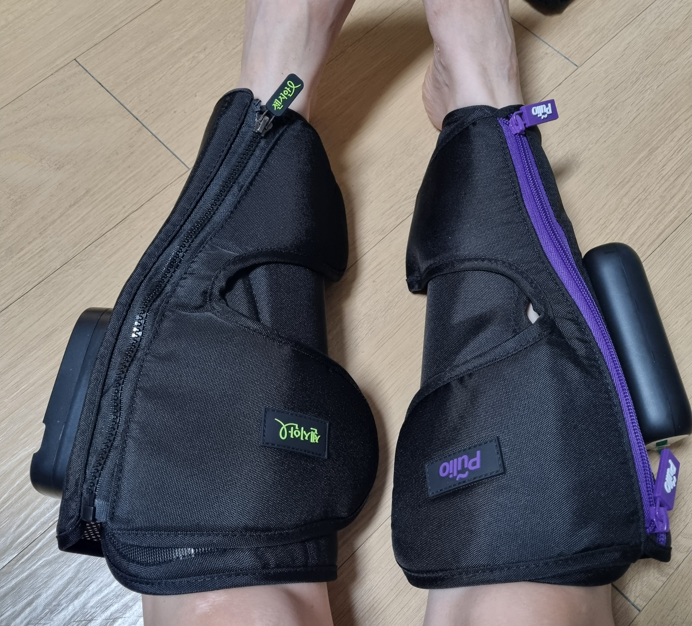 풀리오는 양옆에서 발목, 종아리 부분의 포인트를 양옆에서 조여주는 마사지 스타일입니다.