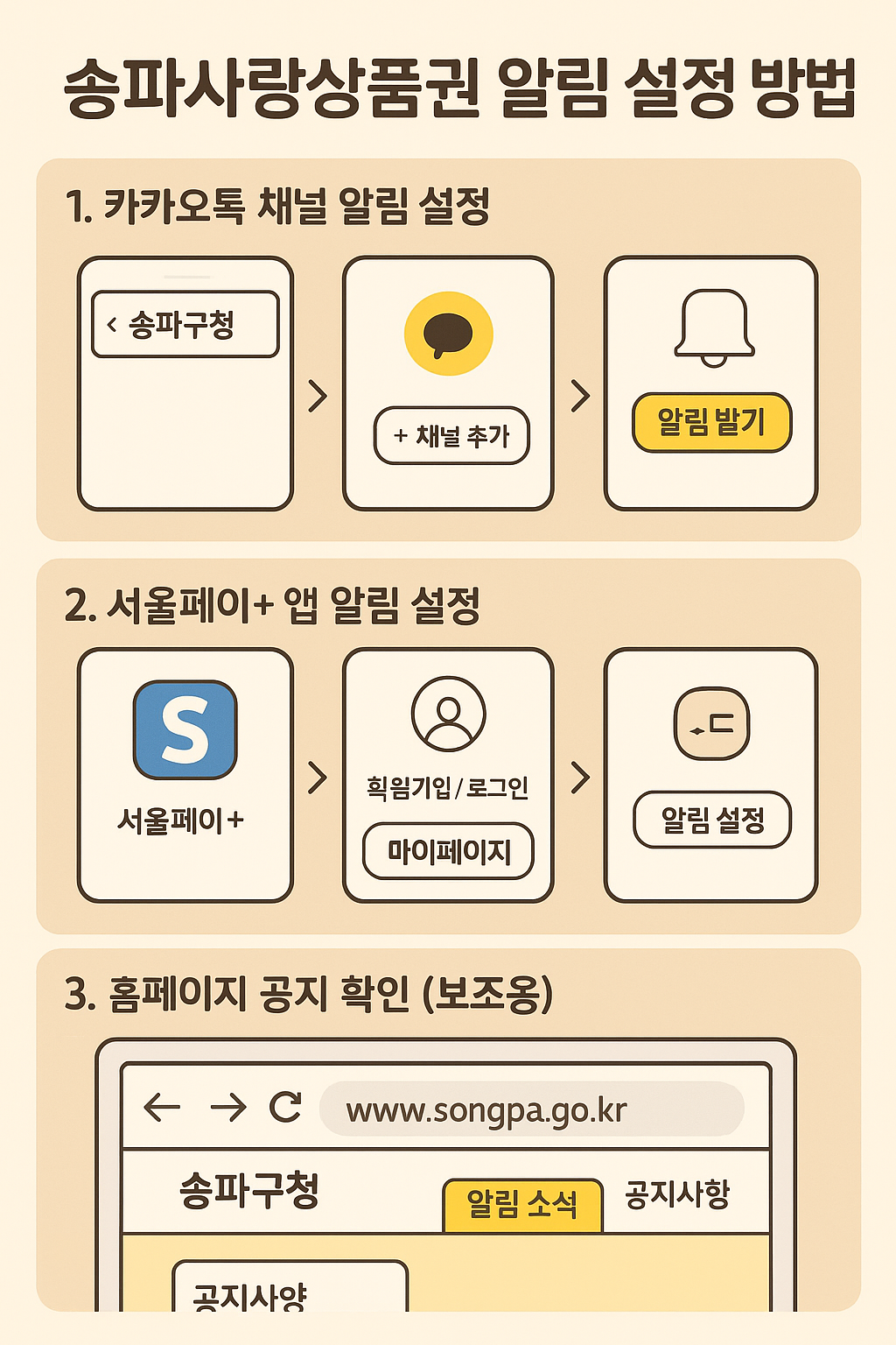 | 알림 방법 | 송파구 공식 홈페이지, 카톡 채널, SNS 등 확인 |